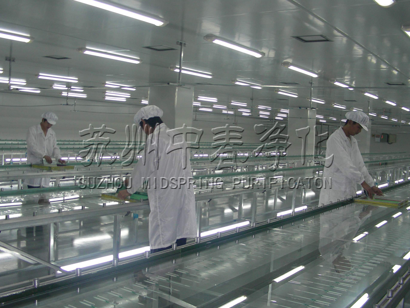 根據(jù)蘇州中春凈化科技有限公司提供的資料顯示:食品凈化車間面積應(yīng)與生產(chǎn)相適應(yīng),布局合理,排水暢通;車間地面用防滑、堅固、不透水、耐腐蝕的材料修建,且平坦、無積水、并保持清潔;車間出口及與外界相連的排水、通風(fēng)處裝有防鼠、防蠅、防蟲設(shè)施。